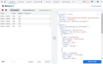 ReSpecT هو امتداد لمتصفح Chrome تم تطويره بواسطة LoJell. يندرج تحت فئة المتصفحات وفئة الإضافات والأدوات. يتيح هذا الأداة المجانية للمستخدمين تحويل طلبات المتصفح (HAR) إلى مواصفات OpenApi / Swagger. ReSpecT ، الذي يعني أداة تحليل المواصفات العكسية لـ OpenApi ، مصمم لمساعدة المستخدمين في إنشاء ملف مواصفات استنادًا إلى مصدرين رئيسيين للمعلومات. المصدر الأول هو طلبات المتصفح الصادرة ، التي يتم التقاطها وتحليلها بواسطة الامتداد. المصدر الثاني هو استدعاء واجهة برمجة التطبيقات المخصصة للمستخدم إلى أي خدمة. باستخدام ReSpecT ، يمكن للمستخدمين بسهولة إنشاء ملفات مواصفات OpenApi / Swagger عن طريق تصفح المواقع أو إجراء استدعاءات واجهة برمجة التطبيقات. يمكن أن يكون ذلك مفيدًا بشكل خاص للمطورين الذين يحتاجون إلى وثائق APIs أو تحليل مواصفات APIs الحالية. يوفر الامتداد طريقة سهلة وفعالة لتحويل طلبات المتصفح إلى مواصفة شاملة. بشكل عام ، ReSpecT هو أداة قيمة للمطورين العاملين مع مواصفات OpenApi / Swagger. يبسط عملية تحويل طلبات المتصفح إلى مواصفة منظمة ، مما يجعل وثائق APIs وتحليل المواصفات أكثر كفاءة.